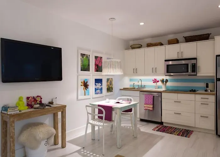 A la Villa Shamrock By The Gables vous serez à proximité de sites touristiques populaires comme le Centre d'art international Coral Gables. Une cuisine avec une micro-ondes, une lave-vaisselle et une machine à laver est incluse dans la villa pour que les hôtes puissent cuisiner eux-mêmes.