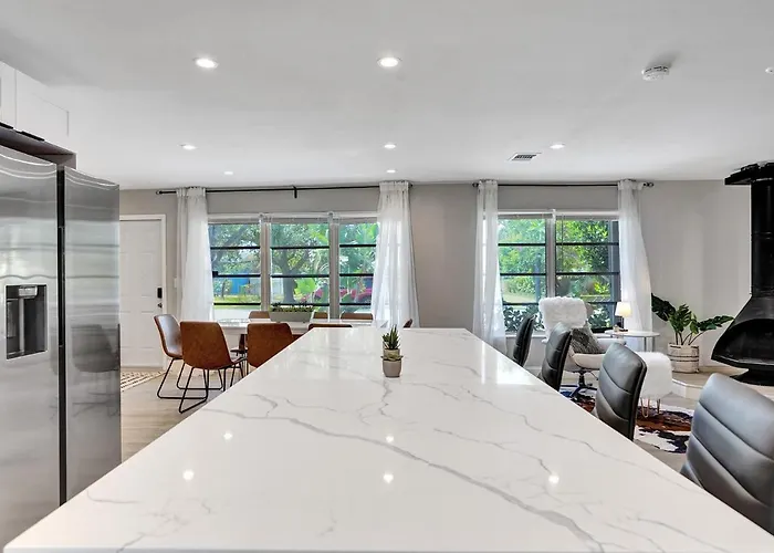 The 3-bedroom Family Oasis Pet Friendly, 2 King Beds, Ac & Bbq Villa is situated in Pompano Beach, around 10 minutes by car from Pompano Beach Amphitheater and approximately a 15-minute walk from the shopping mall "Pompano City Centre". The villa features garden views and is provided with a kitchen.